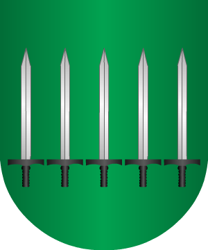 estas armas: Escudo partido: 1º, en campo de oro, un roble de sinople,