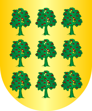 El Cronista y Rey de Armas Vicente de Cadenas recoge este apellido radicado en La Coruña, Madrid y México. Armas 1.- Los radicados en La Coruña: En campo de oro, nueve castaños, de sinople, frutados de gules, puestos en tres fajas de a tres. 2.- Los radicados en Madrid y México: En plata, tres castaños, al natural, bien ordenados. 3.- Otros: Escudo partido: 1º, medio cortado por una faja de sable, la parte alta de oro, con un león rampante de gules, y la parte baja de azur, con tres espadas de plata, con la guarnición de oro, puntas arriba, y 2º, en campo de sinople, unas peñas de oro y sable, saliendo de aguas de azur y plata, y sumadas de un castillo de oro, y en los flancos tres bezantes de plata a cada lado. Información de estos linajes complementada por cortesía de blasonari.net |
