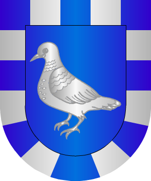 volante, con una rama de olivo de sinople, en el pico. 10.- Los radicados en las Islas Baleares, según Vicente de Cadenas, usan: En campo de plata, una colomba, de azur, manchada de sable, con una rama de oliva en el pico, de sinople, y, en punta, ondas de azur y plata. 11.- Los de Torroja (Tarragona) usan: En campo de oro, una banda de azur. Jefe de gules. 12.- Los de Castilla, según Vicente de Cadenas, traen: En campo de azur, una pira, de plata. Jefe de oro. 13.- Según Rietstap, los Colomb, de Vevey, traen: En campo de gules, una paloma, de plata, puesta sobre un cerro, de sinople, en la forma que se dibuja. 14.- Según Rietstap, los Colomb, de Quercy, traen: En campo de azur, un cabrio, de oro, surmontado de un creciente, de plata, y acompañado en jefe de dos estrellas de lo mismo, y en punta de una paloma también de plata. 15.- Según Rietstap, los Colomb, de Provenza, traen: Escudo cortado: 1º, de azur, una paloma, de plata, acompañada de tres estrellas de lo mismo, 2º, de plata, una cruz de Lorraine, de gules, naciente de la punta. 16.- Otros, según Juan Francisco de Hita, traen: En campo de gules, una paloma de plata, armada de oro. 17.- En el sello de Guillermo Colom y de Dusay, de 1435, constaban las siguientes armas: En campo de oro, una paloma de sable. Bordura componada de ocho piezas de lo mismo. 18.- En Perelada (Gerona) constan: Una paloma contornada y mirando a la diestra. 19.- Los de Cataluña, según Vicente de Cadenas, usan: En campo de gules, una palma, de plata. Bordura componada de tres almenas, y en cada una traen: en plata, una paloma parda volando con un ramo de oliva de sinople en el pico, y en punta, ondas de mar. Información de estos linajes complementada por cortesía de blasonari.net |