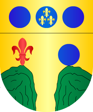 1º, en campo de oro, un árbol de sinople, con una loba y dos lobeznos