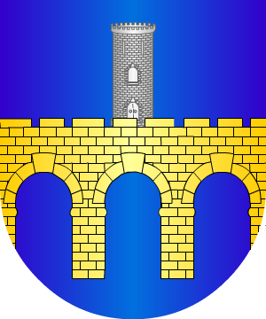 ocho torres, de oro. puestas 3 en jefe, 2 en los flancos y dos en punta (Portugal),