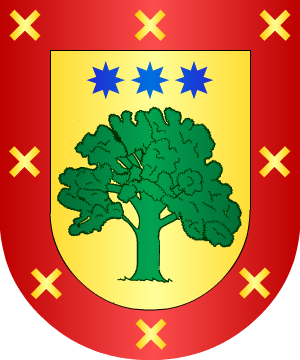 de plata; en el segundo, un moral en campo de oro; medio partido, de plata,