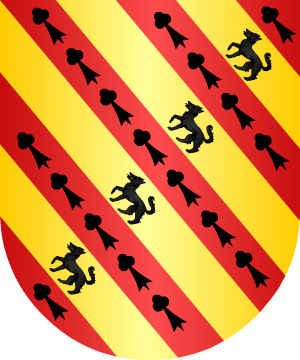 dos palos de sinople, y 2º de azur, un creciente ranversado de plata. 3.- Escudo partido, 1º de oro, tres palos de sinople, y 2º de azur, un creciente ranversado de plata. 4.- Escudo partido: 1º, de azur, un creciente de plata ranversado, y 2º, de oro, tres palos de sinople. 5.- Escudo partido: 1º, de sinople, tres palos de oro, y 2º, en campo de azur, un creciente de plata. 6.- Una rama de Zaragoza: Escudo partido: 1º, de oro, tres palos de sinople recortados, y 2º, de azur, un creciente de plata. 7.- Los de Arguedas, en Navarra: En campo de gules, cuatro bandas de oro cargada, cada una, de un lobo andante de sable y, entre ellas, diez y ocho armiños de sable. 8.- Otros de Arguedas: Escudo cuartelado: 1º y 4º, de gules, una banda de plata cargada de dos lobos de sable, y 2º y 3º, de gules, una faja de oro. 9.- En campo de azur, un castillo de oro acompañado de dos llaves de oro, una a cada lado, y saliendo de la puerta, una cadena de hierro. 10.- Los de Portugal, que descienden de los Señores de Vizcaya: En campo de gules, tres pescuezos, con sus cabezas de serpiente de plata, enlazados y atados de oro y, la del medio, montante, con las de los lados contramirandose. 11.- Los de Aragón y Murcia: Escudo partido: 1º, en campo de oro, dos bastones nudosos de sinople, puestos en palo y en faja, y 2º, en campo de azur, un creciente ranversado de plata. 12.- Los de Vizcaya: Escudo partido: 1º, en campo de azur, una cruz versada de plata, 2º, en campo de oro tres palos de sinople. Información de estos linajes complementada por cortesía de blasonari.net |