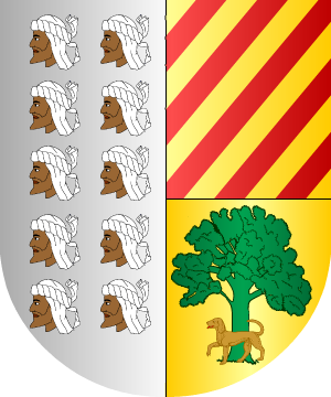 mismo, escudo jaquelado de oro y gules, de quince piezas: ocho de oro y siete