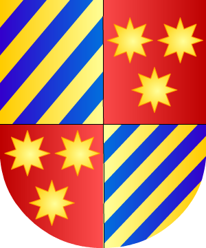 de ... una banda de ... (Desconocemos los esmaltes). 5.- Los Ardebol, traen: En campo de gules, una torre, de oro, resaltada de una bandera de plata. Información de estos linajes complementada por cortesía de blasonari.net |