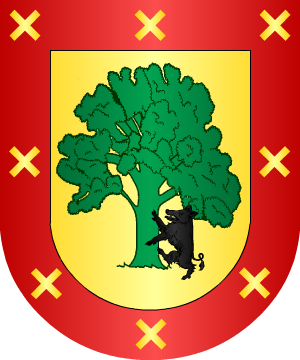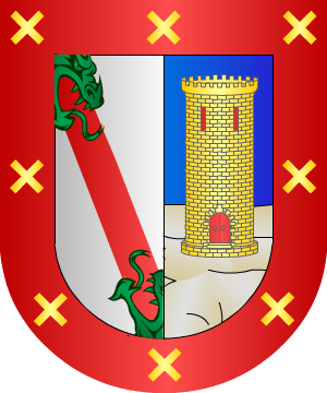 De la villa de Ataún, en el partido judicial de Tolosa (Guipúzcoa). Armas Escudo cortado, 1º de plata, una banda de gules engolada de dragantes de sinople; y 2º de azur, una torre de oro sobre peñas al natural. Bordura general de gules con ocho aspas de oro. |