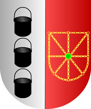 Ayanz Ayanz de Navarra Navarro, del lugar de su nombre. Enlazó con la Casa Real de ese Reino (mediante el matrimonio de Fernando Martínez Ayanz con Doña Leonor de Navarra, nieta del rey Carlos III de Navarra), formando el apellido Ayanz de Navarra. Armas 1.- Trae escudo partido, 1º en campo de gules, medias cadenas de Navarra; medio cortado de azur, dos leones rampantes y afrontados de plata; y 2º de oro, tres calderas de sable puestas en palo. 2.- Los Ayanz de Navarra traen: Escudo partido, 1º de plata, tres calderas de sable puestas en palo; y 2º de gules, las cadenas de Navarra de oro. |