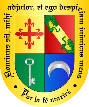 de sable y en lo bajo de un águila, también de sable. 22.- En el expediente del Caballero de Calatrava Francisco Antonio Martín y Berrio, natural de Cabeza de Buey, año 1749, constan las siguientes armas para los López-Berrio: Escudo partido: 1º, en campo de gules, un sol dibujado, debajo una inscripción que pone "Solos", y 2º, cortado: primero, en campo de sinople, una cruz que parece de Alcántara, y segundo, en campo de azur, una barra de gules que lo atraviesa y un águila. 23.- Aznar Martínez de Berrio, caballero navarro, árbitro en el pleito entre los Enériz y el Arcediano de la Cámara, año 1280, usaba por armas: Tres potes, bien ordenados. 24.- Otros Berriozábal traen: Una banda, acompañada de tres estrellas y un árbol. Pero no indica los esmaltes. Información de estos linajes complementada por cortesía de blasonari.net |
