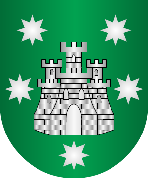 de gules, un castillo de oro, terrasado de sinople, y en su torre de homenaje