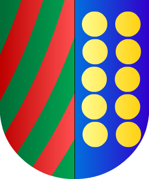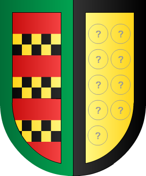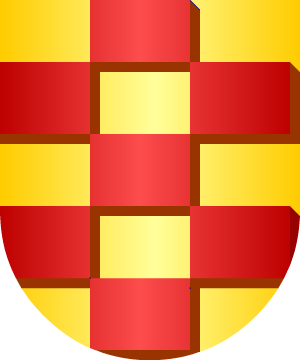 1º, de gules, con tres fajas jaqueladas de oro y sable, en dos órdenes,