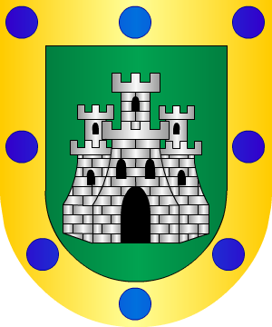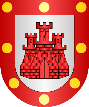 todo de oro. 69.- En el "Libro de Armería de Navarra" aparecen las armas de Mossén Francisco del Castillo, Caballero de San Jorge, vecino de Tudela, y de Juan del Castillo, su hijo, vecino de Cascante, que son: Escudo cuartelado: 1º y 4º, en campo de plata, una cruz floreteada de gules, y bordura para este cuartel de azur con ocho castillos de gules, y 2º y 3º, en campo de azur, un castillo de gules, un lucero de oro en jefe, y bordura para este cuartel de azur con ocho luceros de oro. 70.- Otros, según Gonzalo Argote de Molina, traen: En campo de azur, un castillo de oro con una bandera blanca. 71.- José de Rújula y Escobal, Cronista y Rey de Armas del Rey Don Alfonso XIII, certificó el 23 de Enero de 1904 las siguientes armas. Escudo cuartelado: 1º y 4º, en campo de azur, una cruz floreteada de oro, y 2º y 3º, en campo de gules, un castillo de oro. 72.- Otros, según Alonso Rodríguez de la Vega, traen: "Un castillo de oro en campo de gules y un león en campo de plata". 73.- Otros, según Agustín de Loaysa, usan: En campo de sinople, un castillo de plata pasado de sable. Bordura de oro con ocho roeles de azur torneados. 74.- Otros, según Agustín de Loaysa, traen: En campo de plata, un castillo de gules. Bordura de gules con roeles de oro. 75.- Otros, según Agustín de Loaysa, usan: En oro, un castillo con dos perros atados. 76.- Otros: En campo de azur, sobre ondas de azur y plata, tres islas, de sinople, y sobre ellas, tres torres, de oro, puestas en faja. 77.- Otros: En campo de azur, terrasado de sinople, un castillo de plata mazonado y almenado, aclarado de sable, con dos leones de plata, rampantes y afrontados a ambos lados de la puerta y sumado su homenaje, de cinco cadenas de gules. 78.- Otros, según Ave de Gracia, traen: En campo de gules, un castillo de plata con cinco almenas, sobre rocas pardas. Bordura de plata con seis rosas de azur. Información de estos linajes complementada por cortesía de blasonari.net |
