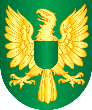angulada de espigas del mismo metal; 3º, en campo de oro, un águila