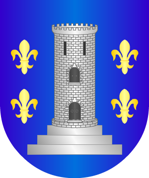 perro de plata rampante, cargado de una flor de lis de azur en la cara y sosteniendo