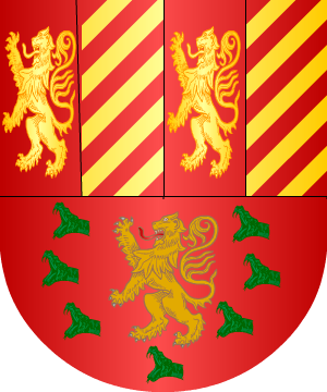 y plata. Bordura de oro con ocho cabezas de león de su color natural