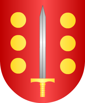 de sable con tres palos de plata, cargado cada uno de tres sotueres de azur. Complemento de información de estos linajes por cortesía de blasonari.net |