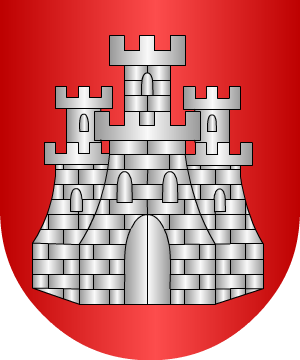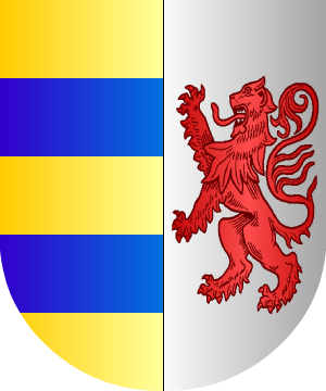 Partido: 1.º, en oro, dos fajas, de azur, y 2.º, en plata, un león rampante, de gules. (Ref.: CADENAS) |