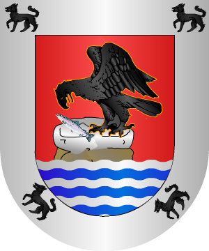 Castellano. De Astudillo (Palencia), que probó su nobleza en la Sala de Hijosdalgo de la Real Chancillería de Valladolid. Mantelado: 1.º, en azur, una columna de oro y un león del mismo metal empinado a ella; 2.º, en gules, un castillo de plata, sostenido por dos leones de oro, y el mantel de azur con un guerrero matando con un puñal a un jabalí. Bordura de gules con ocho aspas de oro. (Ref.: CADENAS), (ref.: ATIENZA), (ref.: GONZALEZ-DORIA), (ref.: GARCIA CARRAFA) |