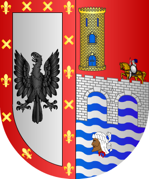 Del valle de Toranzo (Cantabria). Partido: 1.º, en plata, un águila de sable, y bordura de gules, con seis aspas de oro (dos en jefe y cuatro en los flancos) y siete flores de lis, también de oro (dos en los ángulos del jefe, cuatro en los flancos y una en punta), y 2.º, en gules, un puente de plata, sumado de un guerrero a caballo que marcha en dirección a una torre de oro aclarada de azur, que está en el flanco diestro; debajo del puente, ondas de agua de azur y plata, y, en ellas, una cabeza de moro ensangrentada. (ref.: CADENAS), (ref.: ATIENZA), (ref.: GONZALEZ-DORIA), (ref.: GARCIA CARRAFA), (ref.: RIETSTAP). |