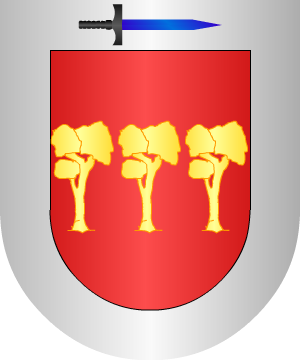 En gules, tres árboles, de oro, puestos en faja. Bordura de plata, con un puñal de azur, encabado de sable, puesto en posición de faja y alterado, (mango a la diestra y hoja a la siniestra). (Ref.: CADENAS) |