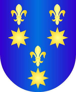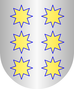En plata, seis estrellas, de oro, perfiladas de azur, puestas en dos palos de a tres. (Ref.: CADENAS) |