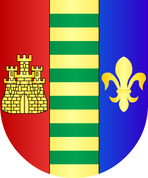 En oro, un león, de sable, rampante y con una rosa en su mano diestra. (Ref.: CADENAS) |
