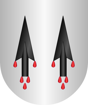 Sin referencias documentales sobre sus orígenes. Armas En campo de gules, un castillo de plata sobre ondas de agua de azur y plata, y a su puerta una dama armada con una espada y rodela. Bordura de oro con ocho aspas de oro. |