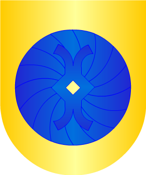 atados a la puerta. Bordura de azur, con cuatro estrellas de oro y cuatro flores