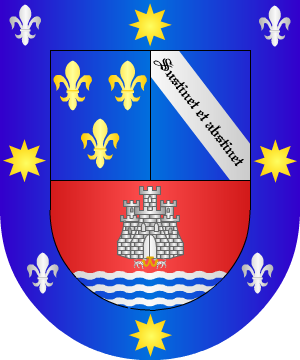 atados a la puerta. Bordura de azur, con cuatro estrellas de oro y cuatro flores