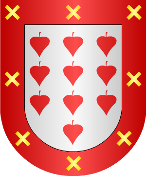 Casa solar Etimología Hidalguía Armas 1.- El primitivo, de Gamarra la Mayor: en gules, trece panelas de plata, puestas en tres palos y una en punta. Bordura de oro, con ocho aspas de gules. Otros de la misma casa suprimieron la bordura. 2.- Los de Perú sólo ponen diez panelas, puestas tres, cuatro y tres. 3.- Otros: en gules, con trece panelas de oro, puestas en tres palos y una en punta. Bordura de gules, con ocho aspas de oro. 4.- Otros: en oro, trece panelas de gules. 5.- Otros: en plata, diez panelas de gules, nueve en tres palos y una en punta. Bordura de gules, con ocho aspas de oro. 6.- La casa propiedad de Pedro de Sagastizabal, en Elorrio, calle Berrio-Otxoa, 22: un escusón con una media luna con los cuernos hacia abajo, formando un escudo cuartelado con los linajes de Ibargúen y Urkizu. 7.- Los de Orduña: en gules, una mujer que lleva un lebrel atado, de plata; en el jefe, un lucero ( o estrella ), de azur; en el ángulo diestro superior del escudo, un creciente de oro. 8.- Los de Bilbao: en oro, un roble de sinople, y, a su derecha, un infante con un dardo y una lanza. 9.- Otros Gamarra de Bizkaia: en plata, tres crecientes de sable, dos en el jefe y el tercero en abismo. 10.- Otros de Bizkaia: en plata, un árbol de sinople y un lobo de gules, pasante, al pie del tronco; a la diestra de la copa del árbol, un creciente de azur ranversado, y a la siniestra un estrella del mismo color. 11.- Otros Gamarra, según Miguel de Salazar: Cuartelado en aspa: 1° y 4°, en azur, un creciente de plata; 2° y 3°, en oro, un lobo andante de sable. Bordura general de gules, con ocho aspas de plata. 12.- Otros: en azur, una paloma, volando, de plata, con un ramo de olivo en el pico, y, sosteniendo entre sus patas, un alfanje de oro. 13.- Otros: Partido por un palo, de oro, cargando de una vergueta de azur: 1°, en azur, un creciente ranversado, de plata; medio cortado de sinople, con trece panelas de oro, puestas de cuatro en cuatro y una de non, 2°, en oro, un cordero blanco echado, con una bandera de gules cargada de una cruz y con el asta de oro; medio cortado de azur, con dos lobos pasantes, de sable, puestos en palo y cebados de sendos corderos blancos. Bordura de azur, fileteada de oro, con veinticuatro aspas de oro. |