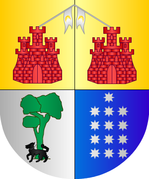 Apellido patronímico, derivado del nombre propio de Garci o García. En el idioma godo, significaba "Príncipe de vista agraciada". Se ha presentado la duda si el apellido García tuvo su origen en Euskalerría. Menéndez Pidal dice: "El nombre vasco García es ya citado en los años 789 y 791 en Castilla. La reina Jimena de León, antes princesa navarra, lo introdujo en Castilla. Uno de sus hijos se llamó García, nombre introducido en Occidente por influencia navarra. Ante la invasión árabe, muchas familias de Castilla, Aragón y Vasconia, huyeron. Tan grande fue la desbandada y tan confusa que se llegó a perder el contacto familiar y los niños olvidaron hasta su nombre. Motivo por el que gran cantidad de ellos eligieron el de García, lo que hizo popular el dicho: "Quien nombre no tenía, García se ponía". Lo anterior se refiere al nombre. ¿Y el apellido? ¿Efectivamente es vasco? García procede de Hortza, Artza, Baartze o Hartze, Es oriundo de Iparralde, lugar donde se aspira la "h", es un sonido parecido a la "g", por esto se aplicó dicha letra por los amanuenses y como no sabían pronunciar la "tz" sufrió muchas variaciones en su escritura. Muchos de los caballeros que lo ostentaron desde remotos tiempos tuvieron la dignidad de Ricohombres. Uno de los primeros varones apellidados García, de que se tiene noticia, fue Ramiro García, Potestad y Gobernador por los años 843. En 981 florecieron Nuño García y Fortún García, este último Señor de la Torre de Tovar; Sancho García fue Conde de Castilla en el siglo X. Varias familias de este apellido proceden de Garci-Jiménez, el héroe de la reconquista de Aragón, que ganó Ainsa, donde fortificó tomando el nombre de Rey de Sobrarbe. Muchas de las numerosas casas del apellido García no tuvieron igual origen ni proceden de un mismo primitivo solar y tronco. Por el contrario, son tan varias y dispares sus procedencias que no existe entre la mayoría de ellas ningún vínculo de parentesco, ni la mas leve y primitiva comunidad de sangre pues, la coincidencia de apellidarse de igual modo, queda plenamente explicada con la antigua y generalizada costumbre de convertir en apellido patronímico el nombre propio de un antecesor. El apellido García está muy extendido por la Península y América. En la actualidad en el apellido de mayor difusión en España. Un 3,65% de los españoles tienen este apellido. Su distribución alcanza a todas las actuales comunidades, siendo el más difundido en 11 de las 17 existentes: Castilla y León (5,33%), Madrid (4,21%), País Vasco (2,67%), Navarra (2,10%), Aragón (2,44%), Andalucía (3,69%), Extremadura (3,33%), Castilla la Mancha (4,61%), Cataluña (2,84%), Comunidad Valenciana (3,44%), y Baleares (2,21%). En otras tres ocupa el segundo lugar: Rioja (3,3%), tras el apellido Martínez (4,2%), Murcia (5,32%), también tras el apellido Martínez (6,54%) y Asturias (3,59%), tras el apellido Fernández (7,92%). En Cantabria (3,59%) es el tercero tras Fernández (4,13%%) y González (3,67%) y, dinalmente, en Canarias (3,54%) y Galicia (2,89%) ocupa el quinto lugar tras Rodríguez (4,88%), González (4,76%), Hernández (4,24%) y Pérez (3,76%), y Fernández (4,07%), Rodríguez (3,68%), González (3,28%) y López (2,94%), respectivamente. Armas (1 al 50) 1.- En Asturias, usaron los García más antiguos estas armas: En campo de plata, una garza de plata picandose el pecho, en el que muestra una herida. Bordura de gules, con este lema en letras de oro: "De García arriba nadie diga". (Ref.: MOGROBEJO). 2.- Otros pintan esta bordura de oro y las letras de sable. D'argent, à un héron de sable dans l'attitude de l'aigle héraldique, s'ouvrant du bec la poitrine ensanglantée, à la bordure d'or, chargé des mots DE GARCIA ARRIBA NADIE DIGA, en lettres de sable. (Ref.: RIETSTAP), (ref.: MOGROBEJO). 3.- Los de Galicia, Asturias y Burgos traen: En campo de plata, una garza de sable, con el pecho rajado; bordura de gules, con este lema: "De García arriba nadie diga", en letras de oro. (Ref.: ATIENZA), (ref.: GONZALEZ-DORIA), (ref.: GARCIA CARRAFA), (ref.: CADENAS), (Ref.: CRESPO DEL POZO). 4.- Una rama de Andalucía trae: En campo de plata, una garza de sable, con el pecho rajado; bordura de azur, con ocho aspas de oro. (Ref.: ATIENZA), (ref.: GONZALEZ-DORIA), (ref.: GARCIA CARRAFA), (ref.: CADENAS), (Ref.: CRESPO DEL POZO). 5.- Los del concejo de Carreño, los de la villa de Candás y los de la parroquia de Guimarán de Moncalvillo (Burgos) traen: Escudo cuartelado, 1º de oro, una garza de sable picándose el pecho y un globo terráqueo de azur a su lado; 2º de plata, un castillo de gules, cargada la torre central con un ángel con dos alas al natural, y a la puerta del castillo, un hombre armado con espada y rodela; 3º de plata, cinco cabezas de moro con sus turbantes puestas en sotuer; y 4º de gules, una espada desnuda de plata puestas en faja, acompañada de tres morriones o celadas de acero con viseras y plumaje, dos en lo alto y una en lo bajo. Bordura de plata con veinticuatro escudetes de sable. (Ref.: ATIENZA), (ref.: GONZALEZ-DORIA), (ref.: GARCIA CARRAFA), (ref.: CADENAS). 6.- Otros de Burgos y Asturias traen: Escudo cuartelado, 1º y 4º de gules, una mano apalmada de hombre, y en punta ondas de mar de azur y plata; y 2º y 3º de azur, un lucero de ocho rayos de oro. (Ref.: ATIENZA), (ref.: GONZALEZ-DORIA), (ref.: GARCIA CARRAFA), (ref.: CADENAS), (ref.: MOGROBEJO). (este último autor indica que las manos son de plata). 7.- Los del concejo de Corvera (Asturias) traen: En campo de sinople, dos leones rampantes y afrontados al natural; en jefe dos flores de lis, una de plata y otra de azur, retocada de plata. (Ref.: ATIENZA), (ref.: GONZALEZ-DORIA), (ref.: CADENAS). 8.- Los de la parroquia de Soto y villas de Cangas de Onís y Llanes: Escudo cortado: 1º, de plata, con tres pinos de sinople, bien ordenados, y 2º, de azur, con un león rampante de plata. (Ref.: GARCIA CARRAFA). 9.