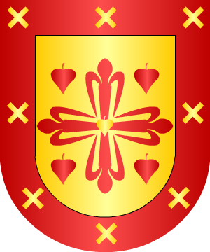 De Santander. Las de Lavín: De plata, con una banda de sinople, cargada de tres armiños de plata y acompañada de dos flores de lis de azur, una a cada lado. Bordura de gules con ocho sotueres de oro. (Ref.: GARCIA CARRAFA). |