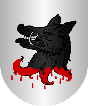 En gules, una espada de plata, guarnecida de oro, puesta en contrabanda punta arriba; en punta ondas de agua de azur y plata. (Ref.: CADENAS). |