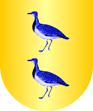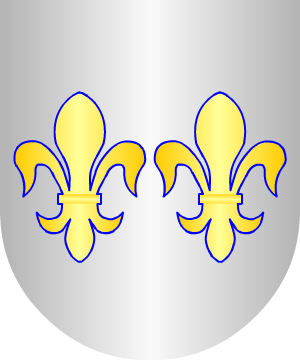 Asturiano. En oro, seis bezantes (debería decir roeles), de azur, puestos en dos palos. Bordura componada de oro y azur. (Ref.: CADENAS). |