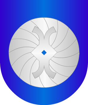 Armas En plata, cinco lises de azur, puestos en sotuer. Bordura jaquelada de plata y gules. (Ref.: GARCIA CARRAFA). |