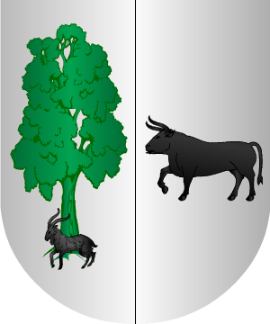 Armas En plata, un león, de gules, coronado de oro. (Ref.: CADENAS). |