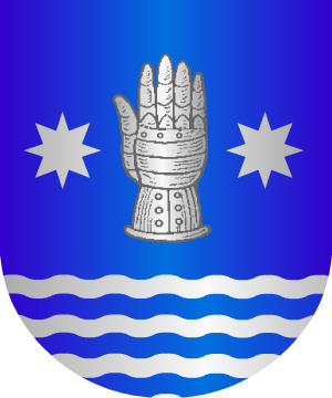 Sin referencias documentales sobre sus orígenes. Armas En campo de azur, un guante palmado, de plata, acostado de dos estrellas del mismo metal. En punta, ondas de agua de azur y plata. |
