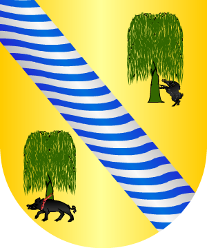 Origen: Gipúzcoa, País Vasco, (España). Armas Partido; 1°, de plata, con el árbol de sinople, terrasado de lo mismo y el perro puesto en salto al tronco; 2°, de gules, con un castillo de oro, aclarado de azur; medio cortado, de plata, con tres panelas de sinople puestas en triángulo. |