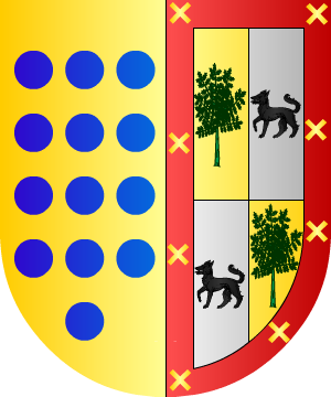 Armas (del 1 al 50) La primera de las cuatro ramas en que se dividieron los López de Galicia, y que se extendió por Avila y Madrid traía: En campo de gules, trece bezantes de oro, puestos en tres palos de a cuatro, cinco y cuatro. Estas mismas armas usan los originarios de Nocedo de Ribeira, radicados en Laroa, Niñodaguia, Puentedeva y Ontomuro (Orense), pasados a Buenos Aires (Argentina). (Ref.: MOGROBEJO), (ref.: GARCIA CARRAFA), (Ref.: CRESPO DEL POZO), (ref.: ATIENZA), (ref.: GONZALEZ-DORIA), (ref.: CADENAS), Otros de la misma rama traen: En campo de oro, dos lobos de sable, andantes, uno sobre otro, acompañados de seis roeles de gules, tres en jefe y puestos en situación de faja, y tres en palo en el flanco diestro, hacia los que miran los lobos. Algunos añaden una bordura de gules. (Ref.: MOGROBEJO), (ref.: GARCIA CARRAFA), (Ref.: CRESPO DEL POZO). La segunda rama establecida en la feligresía de Sobaqueira (Lugo): En campo de oro, una encina de sinople, y dos lobos de sable, andantes, uno por delante y otro por detrás del tronco. Bordura de azur, con ocho sotueres de oro. De esos blasones dio certificación don Francisco Zazo, el 20 de Septiembre de 1718. (Ref.: MOGROBEJO), (ref.: GARCIA CARRAFA), (Ref.: CRESPO DEL POZO), (ref.: ATIENZA), (ref.: GONZALEZ-DORIA), (ref.: CADENAS). La tercera rama gallega con casa en la feligresía de Herdeiros, Pazos de Reyes y Pontevedra: En campo de gules, un castillo de oro con homenaje. (Ref.: MOGROBEJO), (ref.: GARCIA CARRAFA). La cuarta rama gallega usaba: Escudo cortado: 1.º, en campo de azur, un cordero, o “Agnus Dei”, de plata, con una bandera del mismo metal, y 2.º, en campo de gules, un castillo de oro, surmontado de una flor de lis del mismo metal. (Ref.: MOGROBEJO), (ref.: GARCIA CARRAFA) (Ref.: CRESPO DEL POZO), (ref.: ATIENZA), (ref.: GONZALEZ-DORIA), (ref.: CADENAS). Los de Tuy (Pontevedra) según Julio de Atienza, traen: En campo de gules, un castillo de oro de dos torres. (Ref.: MOGROBEJO), (Ref.: CRESPO DEL POZO), (ref.: ATIENZA), (ref.: GONZALEZ-DORIA), (ref.: CADENAS). Los originarios de Santiago de Compostela (La Coruña), radicados en Jaén: En campo de plata, sobre ondas de azur y plata, un pez de oro. (Ref.: MOGROBEJO). Los radicados en Caballeda (Galicia): En campo de oro, un lobo de sable, acosado con tres lebreles de plata, manchados de sable. (Ref.: MOGROBEJO). Otros de Galicia: En campo de sinople, un lobo andante, de sable, entre unas zarzas. (Ref.: CRESPO DEL POZO). Otros también de Galicia: En campo de sinople, cinco veneras, de oro, en sotuer. (Ref.: CRESPO DEL POZO). Los López de Asturias y algunos de Vizcaya y Burgos: En campo de oro, cuatro fajas de gules. (Ref.: MOGROBEJO), (ref.: GARCIA CARRAFA). Otros de Asturias usan: En campo de plata (otros de oro), dos lobos de sable, pasantes. Bordura de azur, con ocho flores de lis de oro. (Ref.: MOGROBEJO), (ref.: ATIENZA), (ref.: GONZALEZ-DORIA), (ref.: CADENAS). Otros, de Asturias, traen: En campo de azur, un buey echado, de oro. D'azur, à un boeuf couché d'or. (Ref.: MOGROBEJO), (ref.: RIETSTAP), (ref.: ATIENZA), (ref.: GONZALEZ-DORIA), (ref.: CADENAS). Otros de Asturias: En campo de plata, tres lobos de sable, puestos en palo. (Ref.: MOGROBEJO), (ref.: CADENAS). Los López del lugar de Sopeña (Santander): En plata, trece bezantes de azur. (Ref.: MOGROBEJO), (ref.: GARCIA CARRAFA). Los López de Guipúzcoa: En campo de oro, un lobo andante de sable, armado y lampasado de gules. (Ref.: MOGROBEJO), (ref.: GARCIA CARRAFA), (ref.: ERDOZAIN), (ref.: ATIENZA), (ref.: GONZALEZ-DORIA), (ref.: CADENAS). Los López de Alava: En campo de plata, dos pinos de sinople, y al pie de cada uno de ellos, un lobo andante, de sable. Bordura de sinople, con cinco sotueres de plata y cinco castillos de oro, alternando. Estas mismas armas traen los López de Soria. (Ref.: MOGROBEJO), (ref.: GARCIA CARRAFA), (ref.: ERDOZAIN), (ref.: ATIENZA), (ref.: GONZALEZ-DORIA), (ref.: CADENAS). Otros López del valle de Carranza (Vizcaya), y de Medina de Pomar (Burgos), usan: En campo de oro, dos lobos de sable, andantes, armados y lampasados de gules. Bordura de gules, con ocho sotueres de oro. Iguales armas usan los López de Espinosa de los Monteros. (Ref.: MOGROBEJO), (ref.: GARCIA CARRAFA), (ref.: ERDOZAIN). Los del valle de Carranza, con rama en Madrid, traen: En campo de plata, cuatro lobos pardos con las cabezas contornadas, puestos en dos palos. Bordura de gules, con ocho aspas de oro. Ref.: MOGROBEJO), (ref.: ERDOZAIN). Otros del valle de Carranza: En campo de oro, una cruz flordelisada de azur. Ref.: MOGROBEJO), (ref.: ERDOZAIN). Otros del valle de Carranza: De azur, con un castillo, de plata, y bordura, de oro, con ocho escudetes, de gules, cargado cada uno con una banda, de oro. (Ref.: GARCIA CARRAFA), (ref.: ERDOZAIN), (ref.: CADENAS). Algunos de Vizcaya traen: En campo de oro, un árbol de sable, frutado y pasante a su tronco un lobo al natural. (Ref.: MOGROBEJO), (ref.: ERDOZAIN). Los originarios de Valduerna (León) y radicados en México y California, traen: En campo de oro, tres fajas de gules, cargada la del centro de cinco copones de plata. (Ref.: MOGROBEJO) Los de León: Escudo partido: 1.º, en campo de oro, un roble de sinople, frutado y un jabalí pasante, y 2.º, cinco cabezas de jabalíes de sable, goteando sangre. (Ref.: MOGROBEJO), (ref.: CADENAS). Los radicados en Remolina (León): En campo de oro, una garra de oso, de sable. (Ref.: MOGROBEJO) Los originarios de Ahedo de Butrón (Burgos) y radicados en Barcelona: En campo de sinople, cinco puntas de alabarda, puestas en aspa. (Ref.: MOGROBEJO) Los originarios de la villa de Rozas (Burgos): En campo de oro, trece roeles de azur, colocados tres, tres, tres, tres y uno. (Ref.: MOGROBEJO) Los radicados en Barcenillas (Burgos): En campo de oro, una rueda de molino de azur. (Ref.: MOGROBEJO) En campo de plata, un árbol de sinople, con dos lobos pasantes y en palo, uno por delante y el otro por detrás del tron