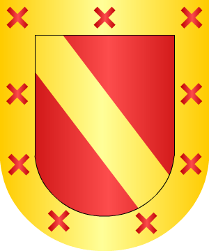 Magarinos Magariños Apellido gallego, con casas solares en Moncelos, del Ayuntamiento de Abadín (Lugo), y en Sietecoros, del Ayuntamiento de Valga (Pontevedra). En la provincia de Pontevedra existe un lugar denominado Magariños, que quizás tenga relación con este linaje. Pedro de Magariños, vecino del coto de Moncelos, probó su nobleza ante la Sala de los Hijosdalgo de la Real Chancillería de Valladolid en 1551. En el siglo XVI, Francisco Magariños desempeñó el cargo de Familiar del Santo Oficio de la Inquisición. Fue padre del Alférez Alberto Magariños Martínez, casado con Antonia Vázquez Romero. Armas 1.- En campo de oro, tres ondas de azur. 2.- Otros: En campo de azur, sobre ondas de azur y plata, un puente, de oro. 3.- Otros: En campo de plata, cinco ondas de azur. Bordura de gules, con cuatro estrellas de oro y cuatro aspas, también de oro, alternando. 4.- El Emperador Don Carlos I concedió, por privilegio dado en Valladolid el 31 de Agosto de 1547, el siguiente escudo de armas al Capitán Francisco Rodríguez Magariños, vecino de Tenochtitlán (México): En campo de azur, un puente de madera, ardiendo, arrimado a una torre que está sobre unas peñas, sobre ondas de agua de azur y plata. Bordura de gules, con ocho granadas de artillería, de oro. Información de estos linajes complementada por cortesía de blasonari.net Bibliografía: El Emperador Don Carlos I concedió, por privilegio dado en Valladolid el 31 de Agosto de 1547, el siguiente escudo de armas al Capitán Francisco Rodríguez Magariños, vecino de Tenochtitlán (México): En campo de azur, un puente de madera, ardiendo, arrimado a una torre que está sobre unas peñas, sobre ondas de agua de azur y plata. Bordura de gules, con ocho granadas de artillería, de oro. |