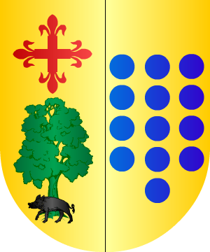 Porcel Porcell Linaje riojano.Una rama pasó a Andalucía. Armas 1.- De oro, una cabeza de jabalí de sable. 2.- Otros traen: De oro, un árbol de sinople, superado de una cruz floreteada de gules, y un jabalí pasante de sable al pie del tronco. |