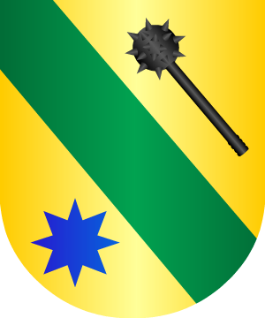 En sinople, dos mojones, indicadores de camino, de plata. (Ref.: CADENAS). |