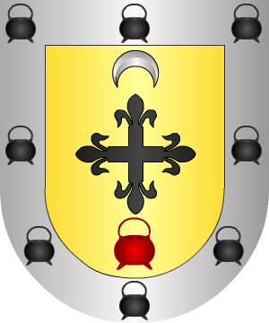 De los Santos Santos Este linaje procede de Asturias, aunque hubo otra casa solar muy antigua en la villa de Santillana y varias ramas pasaron a la también villa de Espinosa. Antes de continuar con la explicación de este linaje, se deberá hacer constar que la casa de Santos está entroncada con las de Toro, Serrano, Beltrán, Freire, Vines de Denia, y Espinosa de los Monteros, así como con los Díez de la Fuente y Roca de Togores y otras no menos ilustres. El entronque con los Roca de Togores se llevó a efecto mediante el matrimonio de don Miguel de los Santos Fournier, que fue capitán de ganaderos de Puebla de los Angeles, con doña Magdalena Roca de Togores. Habrá que decir que este linaje, los Roca de Togores, estaba establecido en Orihuela desde que esta ciudad fue reconquistada del poder de los sarracenos y procedía de Mallorca. Uno de los caballeros que acompañaron al rey don Jaime I, en la conquista de aquella isla fue don Guillén de Togores que participó activamente en la conquista de Mallorca, en el año 1.229, en la de Valencia en el año 1.238, y en las de Orihuela y Murcia, año 1.366. Parece ser que los primeros de este apellido, es decir, el origen del mismo, fue motivado por dos caballeros godos que acompañaron al infante don Fernando en la Conquista de Antequera, reconquistada de los moros en 16 de septiembre de 1.410. Hay constancia de que los esforzados don Sancho y Gonzalo Santos fueron los primeros en escalar la muralla y entrar en la ciudad, ante cuyo valeroso proceder el infante don Fernando, premió su arrojo y valentía haciéndoles merced de muy buenas rentas y mayorazgos. Y así consta por certificación extendida en Madrid, a 27 de abril de 1.713, por don Juan Alfonso Guerra y Sandoval, caballero de la Orden de Santiago, Cronista y Rey de Armas de don Felipe V. Don Martín de Santos, descendiente de los anteriores, asistió en el año 1.427 a las Cortes de Zaragoza y el ilustrísimo don Andrés de Santos alcanzó la dignidad de arzobispo de la citada ciudad. De la rama asturiana procedió don Bartolomé de Santos que fue obispo de Almería, de León y de Sigüenza. En lo que respecta a la rama que pasó a Andalucía, se halla empadronada como perteneciente a la clase de caballeros nobilísimos, hijosdalgo notorios y así se encuentra registrado en los libros del Exmo. Ayuntamiento de Antequera, años 1.640, 1.648, 1.706 y 1.774, donde se enumeran los servicios de esta casa, por la que algunos de sus miembros fueron regidores perpetuos de la citada villa y lugar de Antequera. Uno de estos miembros que ostentó el anteriormente citado cargo fue don Bartolomé Santos que ocupó también otro cargo: el de Familiar del Santo oficio (Inquisición) del Reino de Granada, donde adquirió celebridad por el celo que puso en el desempeño de su misión y la implacable guerra que llevó a efecto en la persecución de judíos, herejes y blasfemos, así como la hechicería. Su hijo, don Juan Matías de Santos, fue canónigo de la insigne colegiata de dicha ciudad, capellán y patrono de gran número de capellanías, y tercer Conde de Argelejo. El hermano del anterior, don Cristóbal de Santos, vivió poco, pero durante su breve existencia en la tierra prestó grandes servicios al Estado lo que mereció que el rey Felipe V le agraciara, por Real Despacho expedido en 25 de septiembre de 1.711 con el título de Vizconde de Fuente Santa para él y sus descendientes. Pero extinguida la rama de los Santos-Villalón por la muerte del joven don Miguel de Oribe de Montehermoso y Santos, cuarto Conde de Argelejo, entró a sucederle su primo don Juan de Santos Toro y Beltrán, vecino que fue de Sanlúcar de Barrameda, regidor perpetuo y quinto conde de Argelejo. Don Felipe de Santos Toro y Freire Altamirano, sobrino del anterior, ostentando el rango de brigadier de infantería, pasó a la expedición de Buenos Aires en 1.776, a las órdenes de don Pedro Ceballos. Más tarde, encabezó otra expedición esta vez por tierras de Africa, concretamente a las costas de Guinea para conquistar para España las islas de Fernando Poo y Annobón, y llegado que hubo a su destino, procedió a desembarcar en la primera de las citadas islas el 21 de octubre de 1.778, proclamando al Rey de España como soberano de aquellas tierras para lo que clavó el estandarte real en ellas. Más no pudo hacer lo propio en la otra isla, la de Annobón porque cuando se disponía a desembarcar en ella, ocurrió su muerte, a bordo del buque "Soledad" el 14 de noviembre al año anteriormente señalado. Don José Felipe de Santos, séptimo Conde de Argelejo, fiel a la tradición de esta familia, murió en el campo del honor el 17 de mayo de 1.794, oficial de las Reales Guardias Españolas, ante el castillo de San Telmo de Coillure, en el Rosellón, en la guerra contra los franceses. El entronque de este linaje con los Espinosa de los Monteros lo llevó a efecto la hermana del anterior, por su casamiento con don Narciso Espinosa de los Monteros y Nijenlat, siendo el nombre de dicha hermana el de doña María Antonia de Santos Toro. Armas 1.- En campo de plata, tres fajas ondeadas, de azur. 2.- Otros traen: En campo de gules, un león rampante, de púrpura. 3.- Los de Castilla (armas primitivas) traen : En campo de gules, un árbol al natural, acompañado de tres coronas, de oro, una en la copa y otra a cada lado del tronco; bordura cosida de gules, con ocho aspas, de oro. 4.- Otros traen: Escudo cuartelado: 1º y 4º, en campo de gules, un castillo, de oro; y 2º y 3º, en campo de azur, tres flores de lis, de oro. 5.- Originario de Cádiz, radicado en Venezuela y extendido por España e Hispanoamérica: En campo de sinople, un águila, de oro, coronada de lo mismo y llevando en su garra diestra un cordero, de plata, y en la siniestra una culebra, de sinople. 6.- Radicado en Pamplona: En azur, un monte, de sinople, saliendo de un sol radiante, de oro. 7.- Radicado en Revilla: En azur, un castillo de cuatro torr
