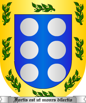 2.- Algunos de este apellido usaron también: Partido: 1º, las armas anteriores, y 2º, de oro, con una cruz flordelisada de azur, cantonada de cuatro calderas del mismo color. Bordura para este cuartel, de plata, con cinco panelas de sinople. 3.- Otros: En sinople, dos cabezas de león, de oro, puestas en faja. 4.- Otros: En gules, un guerrero, de plata, alanceando un jabalí, de sable. 5.- Otros: Una torre sobre ondas de mar rodeada de una cadena. Información de estos linajes complementada por cortesía de blasonari.net |