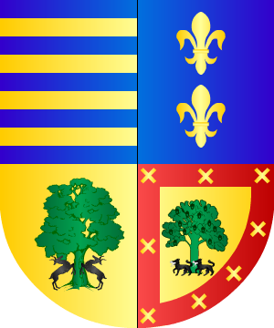 23.- Algunos añaden la bordura de Castilla y León, que es: Bordura componada de ocho piezas alternadas, cuatro de gules, con un castillo, de oro y cuatro de plata, con un león, de gules, coronado, de oro.