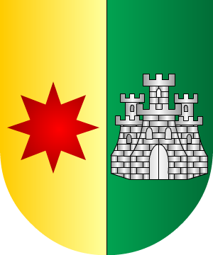 23.- Algunos añaden la bordura de Castilla y León, que es: Bordura componada de ocho piezas alternadas, cuatro de gules, con un castillo, de oro y cuatro de plata, con un león, de gules, coronado, de oro.