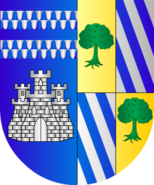 con dos bandas de sable; en el tercero, de plata, un castillo, y en el cuarto