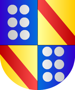 Linaje castellano. Armas 1.- Escudo cuartelado, 1º de plata, tres bandas de azur, y bordura de gules con ocho aspas de oro; 2º de oro, tres fajas de gules; 3º jaquelado de oro y sable; y 4º de azur, un lis de oro. 2.- Los de Cervera de Pisuerga (Palencia) traen: Escudo cuartelado, 1º de gules, un castillo de oro; 2º de oro, un árbol de sinople frutado de oro, y acostado de dos aves de sinople picando sus frutos; 3º de oro, cinco travesas de azur; y 4º de oro, tres gavillas de sinople bien ordenadas. Campaña de plata con dos lobos afrontados de su color. |